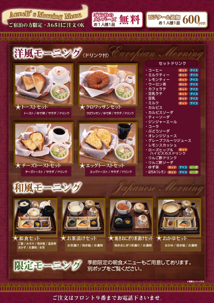 堺・宝塚の人気ラブホ、アンブレインのフードメニュー。人気のホテル、カップルにおすすめ。