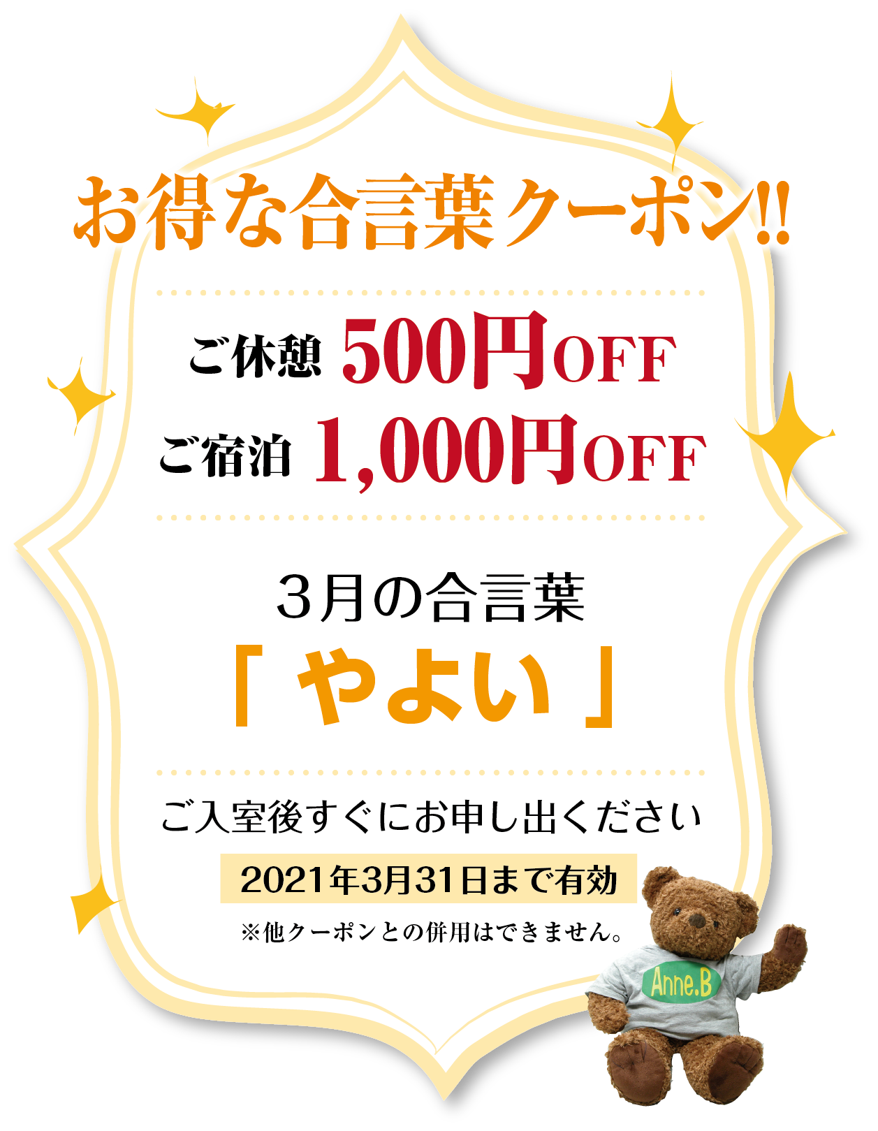 クーポンは5種類からランダムに1部屋1枚セット✨✨