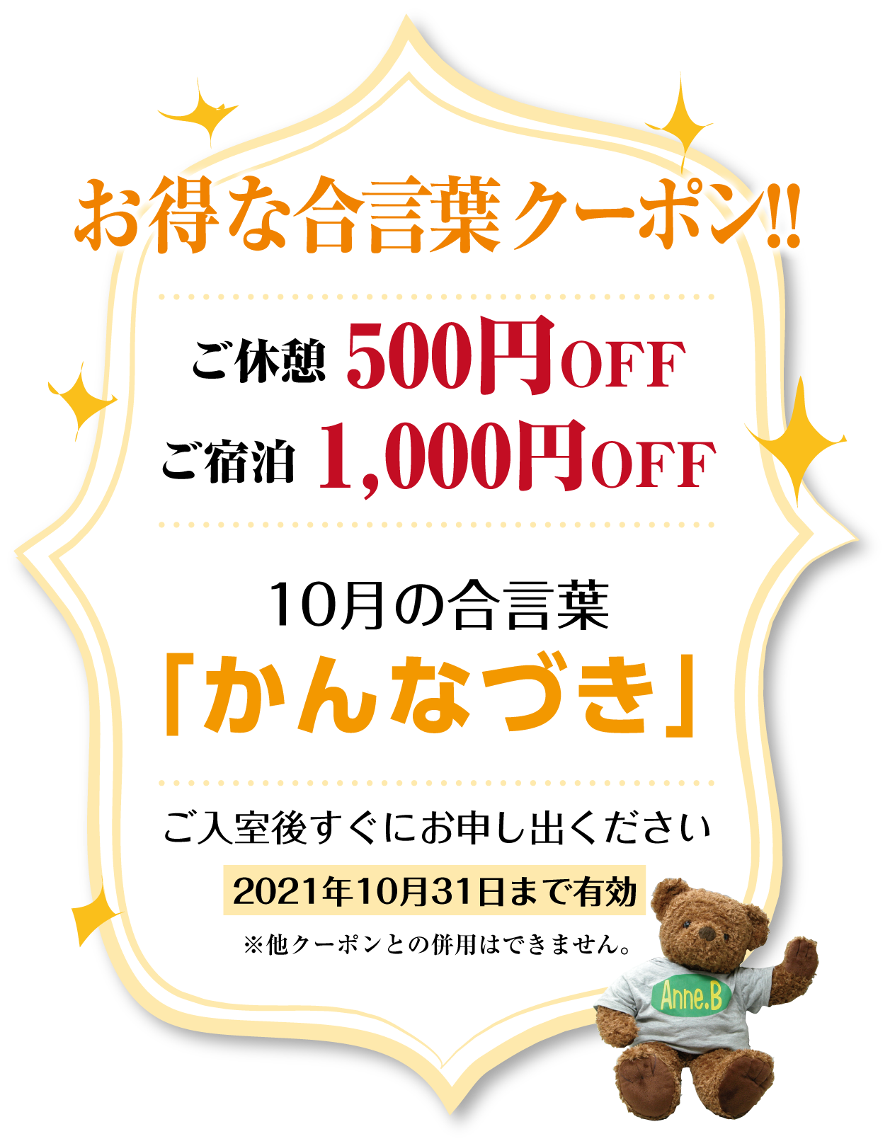クーポンは5種類からランダムに1部屋1枚セット✨✨
