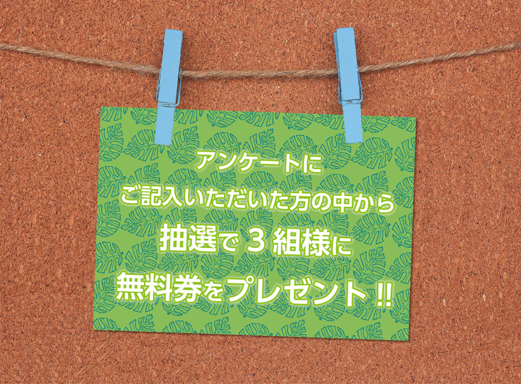 堺店、宝塚店それぞれ3組様に無料券が当たる抽選付きとなっておりますので、ぜひぜひご協力をお願い致しますm(__)m