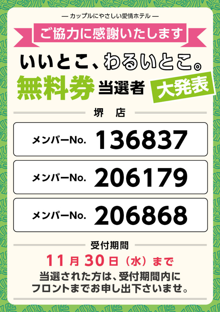 #アンブレイン #堺 #三国ヶ丘 #大仙公園 #古墳群 #宝塚 #伊丹 #荒牧 #荒牧バラ園 #ラブホ #ラブホテル #ファッションホテル #堺のラブホ #伊丹のラブホ #丁寧 #親切 #愛情 #接客 #評判 #デート #カップル #お出かけ #お泊まり #宿泊 #休憩 #サービスタイム #クーポン #メンバー #愛情ホテル #アンケート