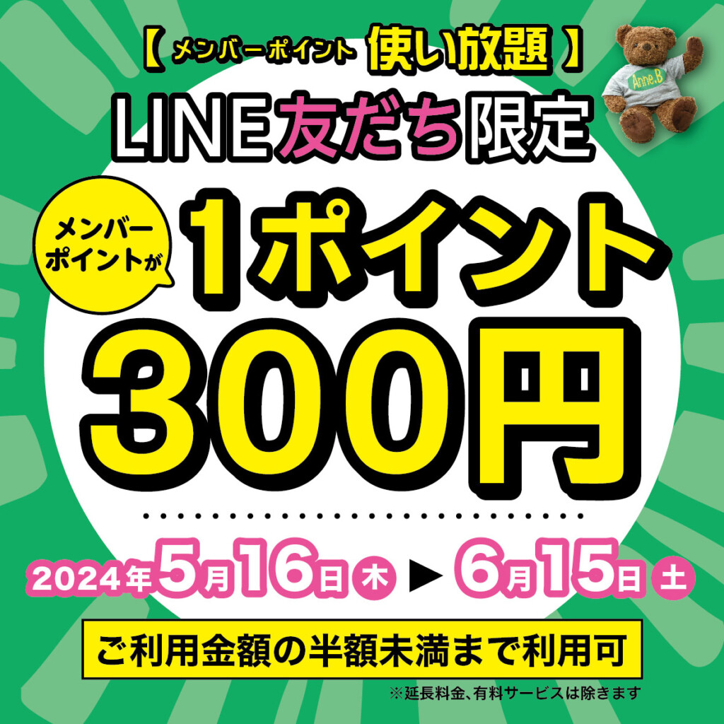 通常メンバーポイント1P=200円でご利用いただけるところを300円でご利用いただけます!