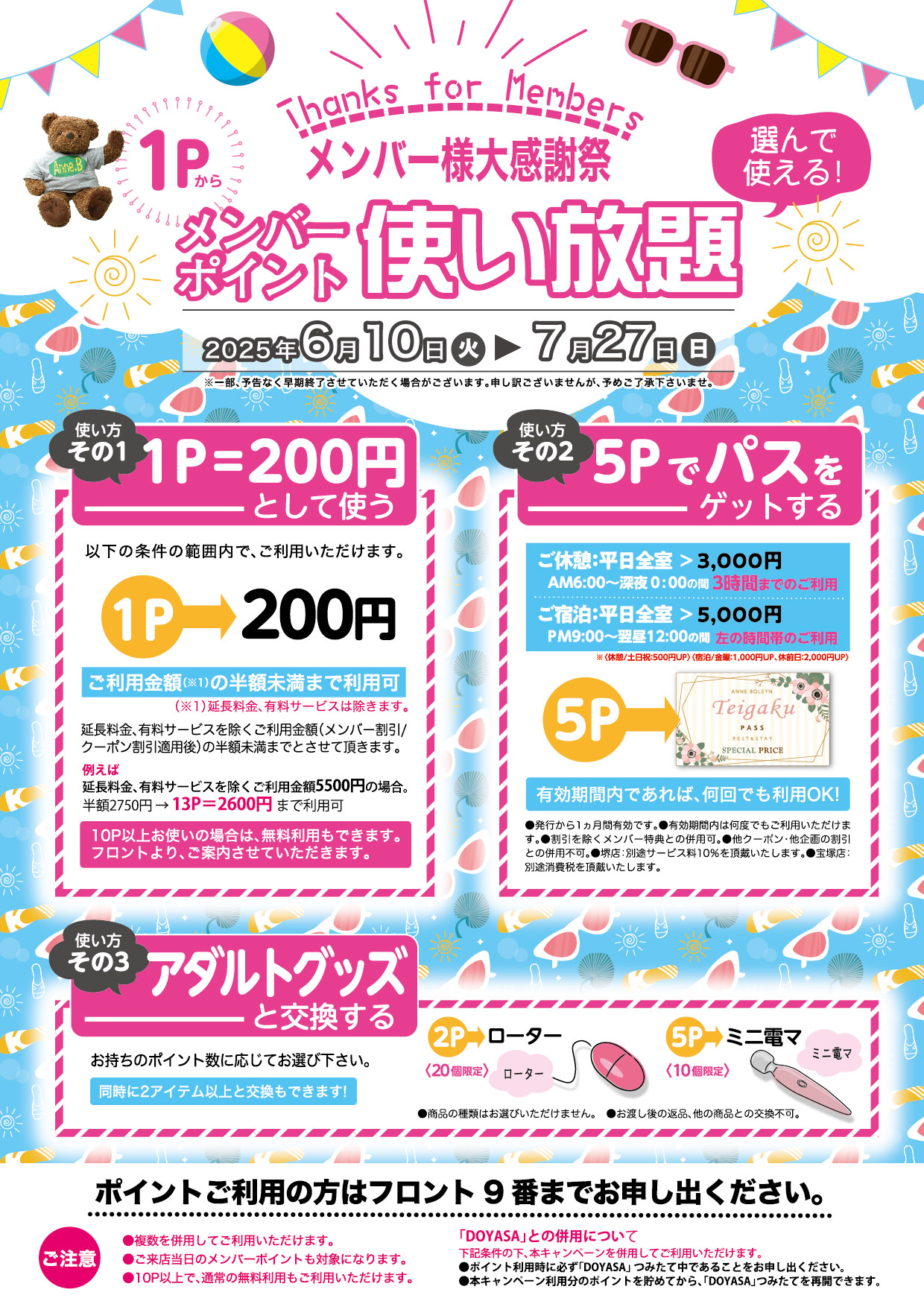日頃のご愛顧に感謝いたしまして、貯まったメンバーポイントが1Pからご利用いただけます!!