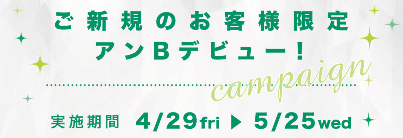 4/29〜5/25の期間中に、はじめてアンBをご利用いただくお客様に特別な特典をご用意しました!