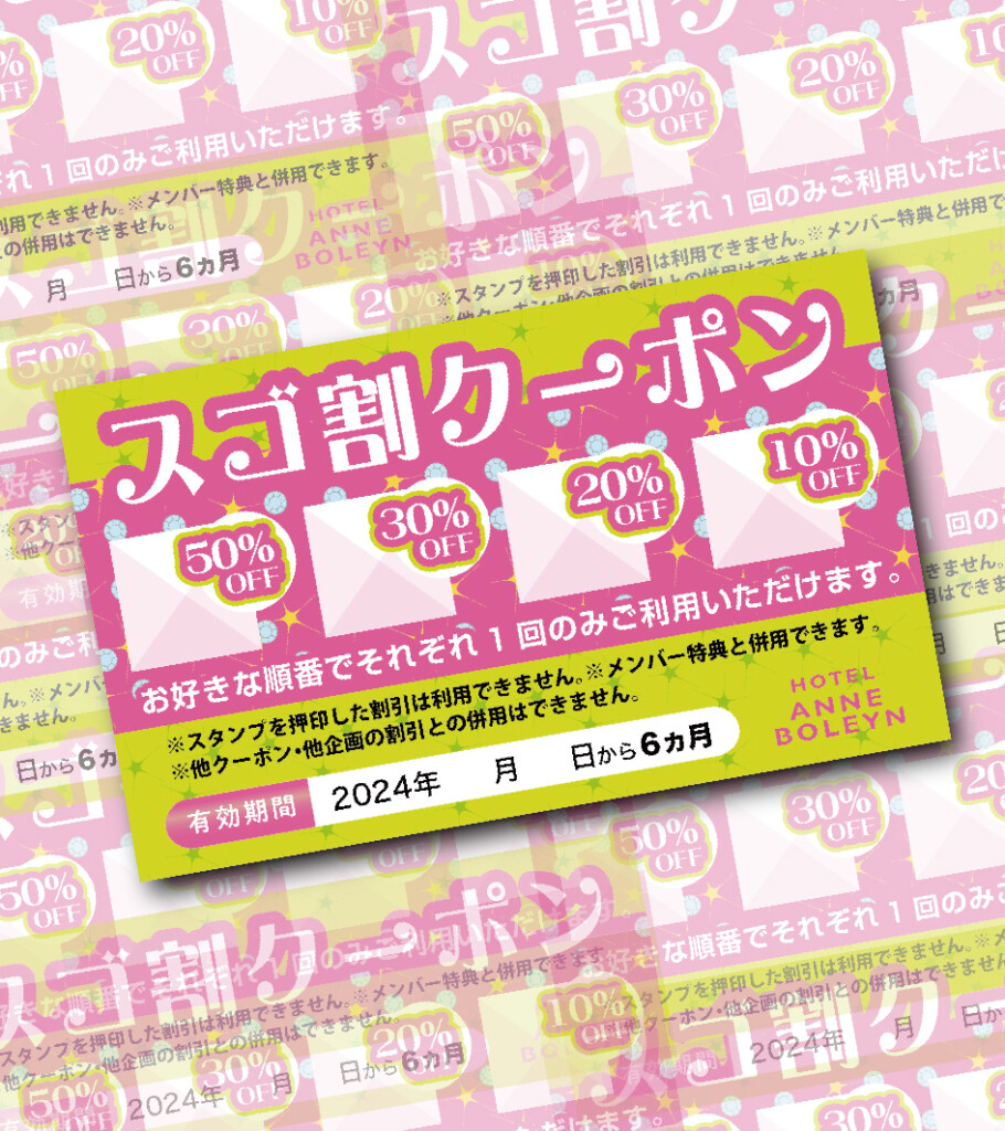 50%off、30%off、20%off、10%off をお好きな順番でご利用ください。