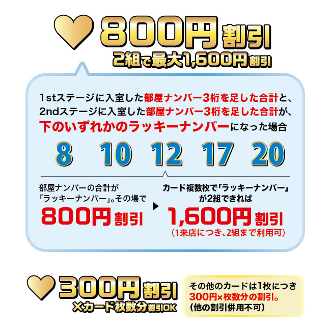 1枚でもお持ちのお客様は、ご来店の際にぜひフロントまでお申し出くださいませ。