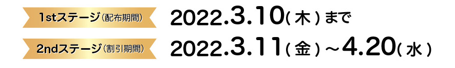 2ndステージはいよいよ割引にお使いいただける超お得な期間となっております。