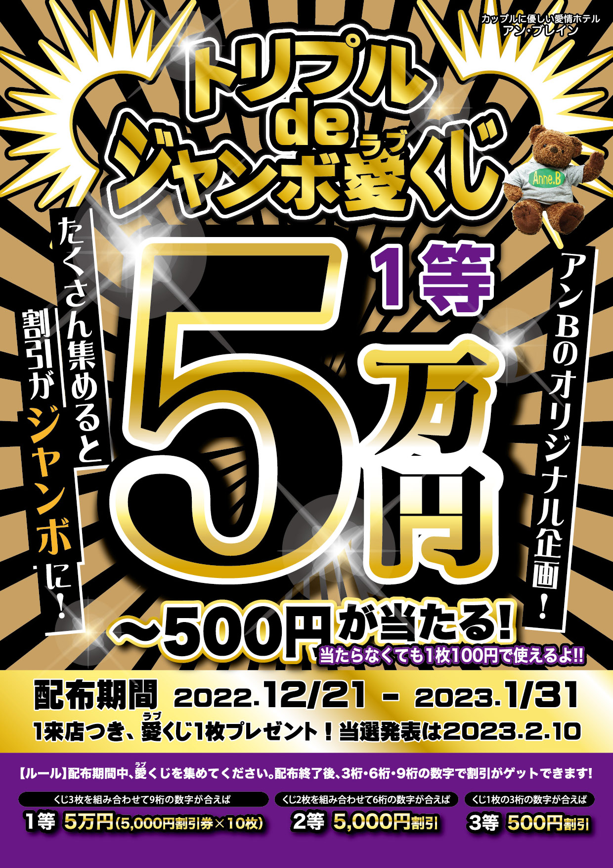 ●ジャンボな特典の愛(ラブ)くじ・・・1等はなんと5万円分のクーポン券!