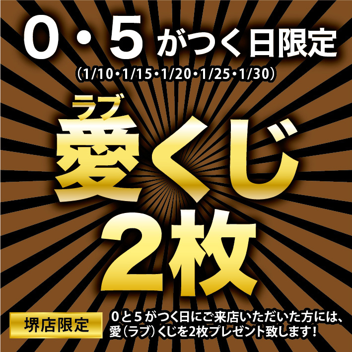 堺店・・・「0」 または 「5」 がつく日(1/10・1/15・1/20・1/25・1/30)