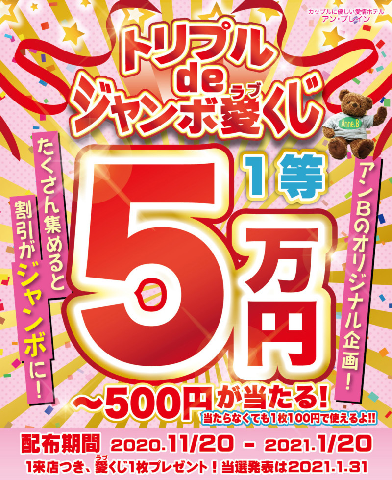 11/20から、年末年始ぶっ通し企画「トリプル de ジャンボ 愛(ラブ)くじ」開催中!