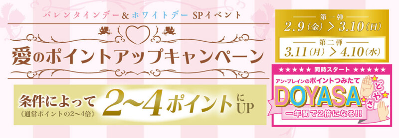 期間中(2/9〜3/10)のご来店で獲得できるメンバーポイントが2〜4倍にアップいたします!!