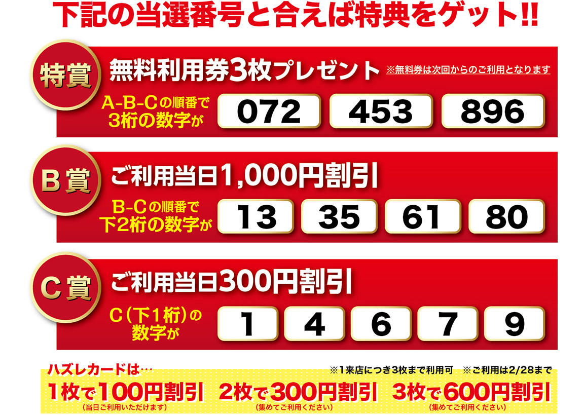 終了まで残り1ヶ月となりましたが、スクラッチカード がなくなり次第終了となりますので、 無料券を狙っている方はお急ぎくださいませ!