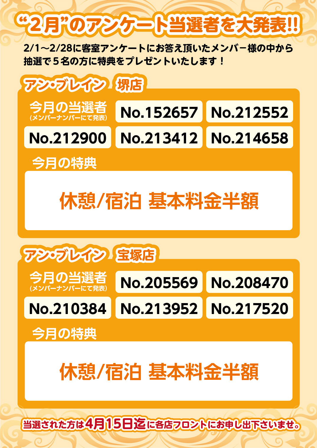 2月のアンケートから選ばれたメンバー様はコチラ!!