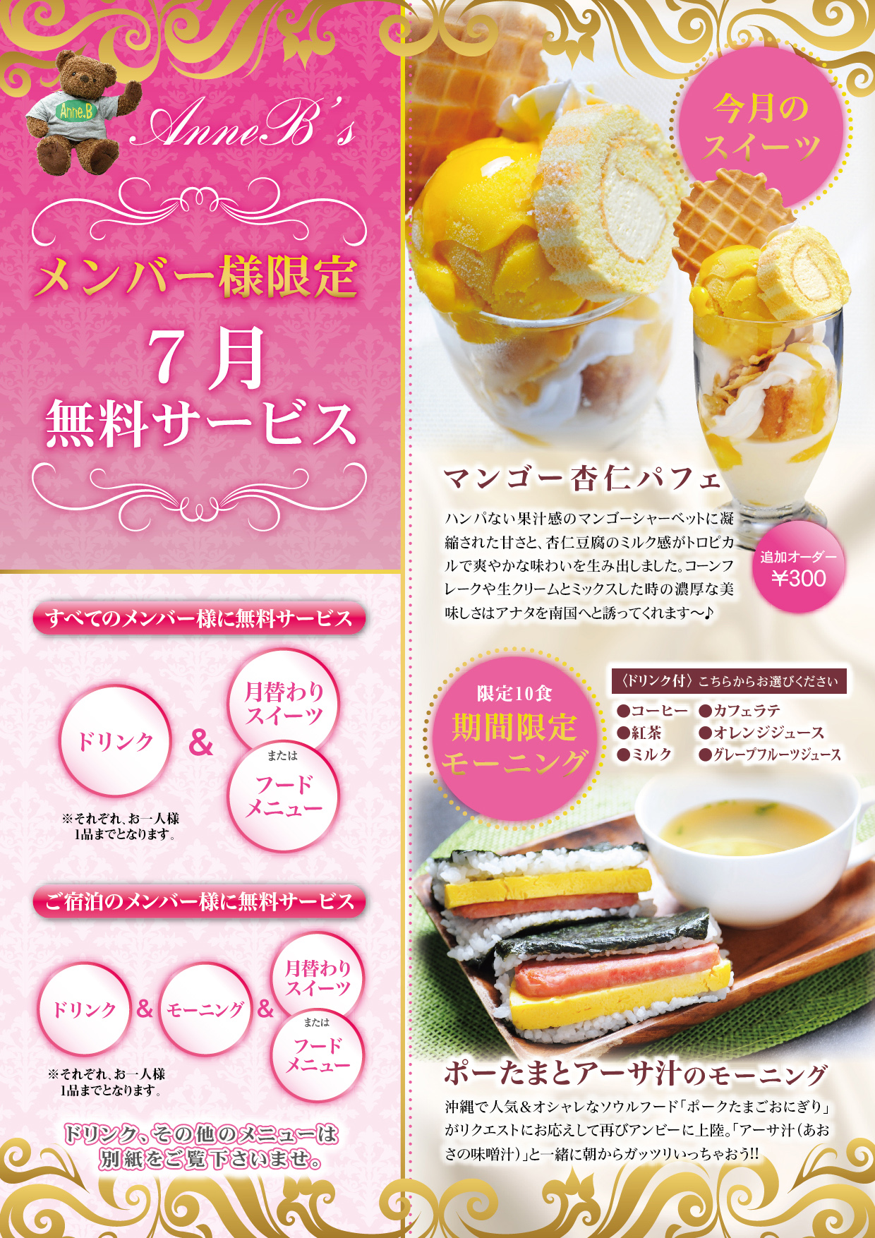 堺・宝塚の人気ラブホ、アンブレインの無料サービススイーツメニュー。人気のホテル、カップルにおすすめ。