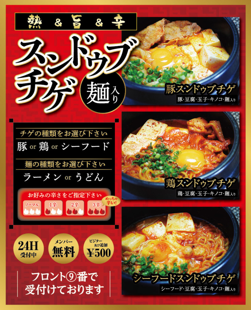 この季節にうれしいホットなメニュー「スンドゥブチゲ(麺付き)」が登場!