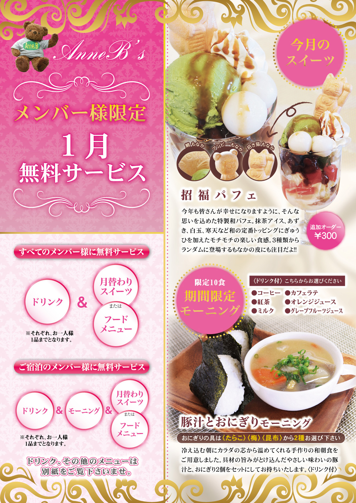 ホテルアンブレインの無料サービスメニュー  ホテルアンブレインの無料サービスメニュー