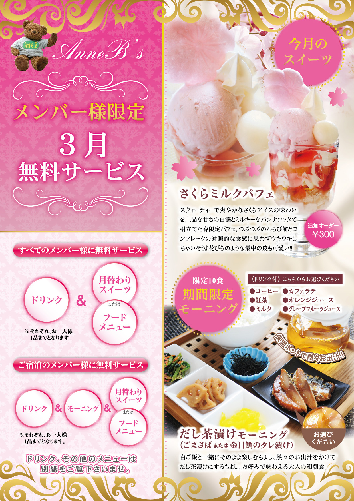 待ちに待った春の到来!アンBの無料メニューも春色に大変身!!