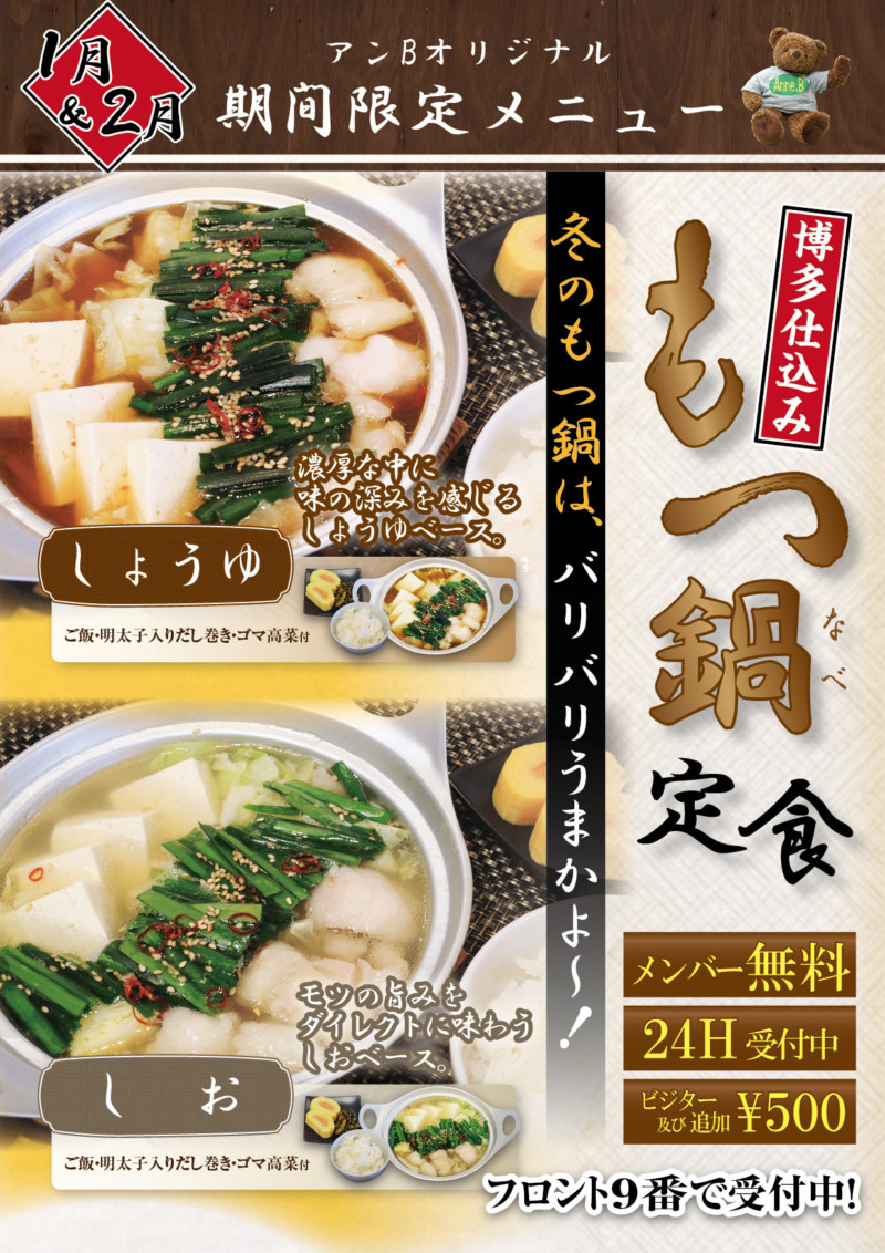 寒い季節にうれしい期間限定メニューは「もつ鍋定食」です!