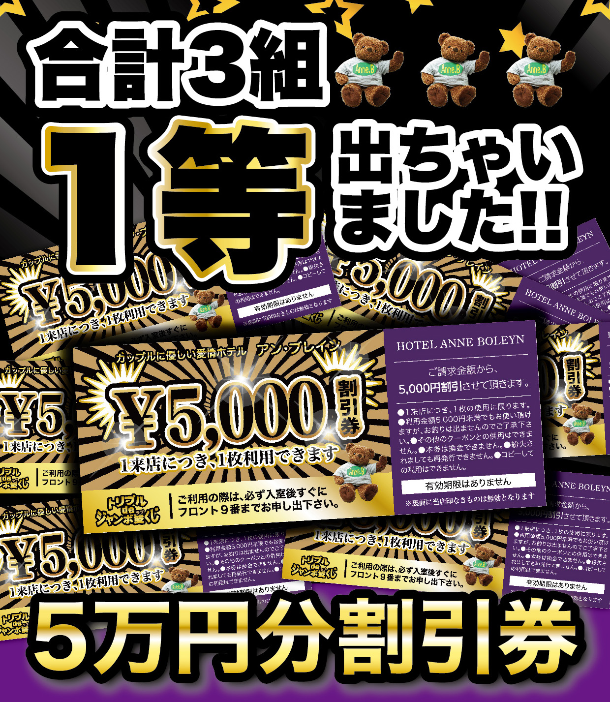 5000円当選者様も2組おられ、500円、100円の割引利用がものすごいことになっていて、少しビビっておりますが、愛(ラブ)くじお持ちの方は忘れずご利用くださいませ。