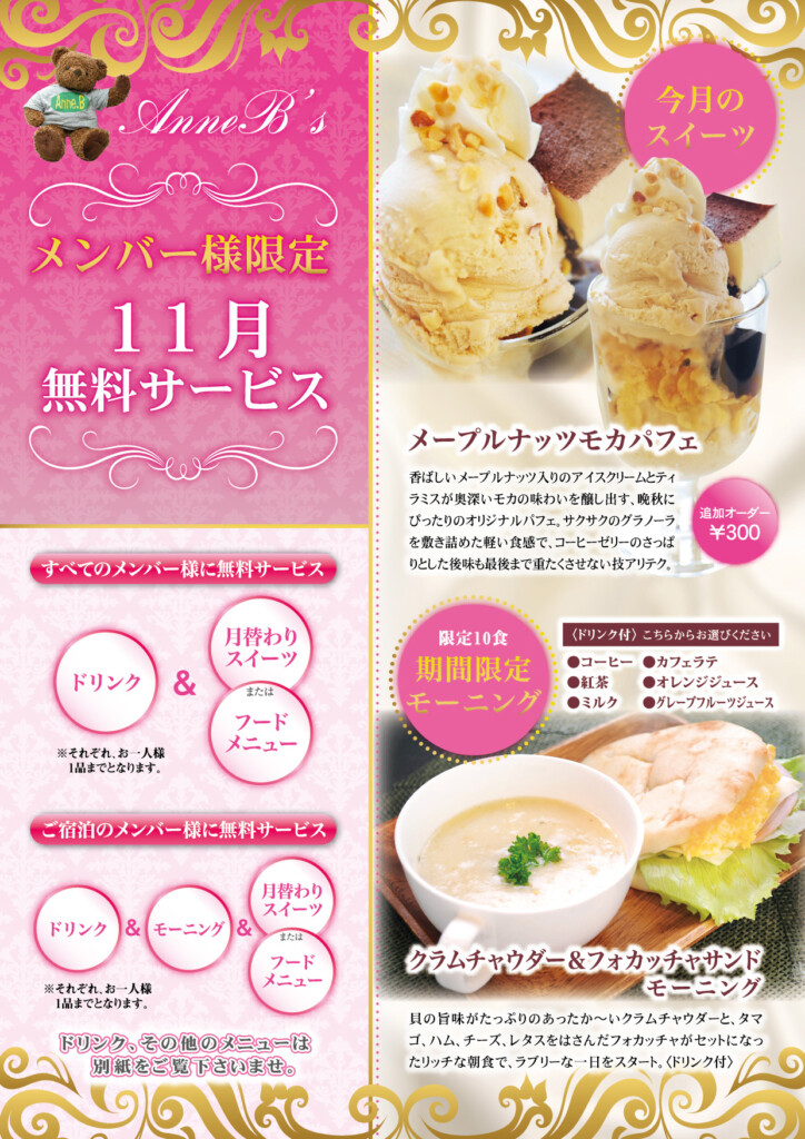 ●ご宿泊のメンバー様お一人様1品無料●