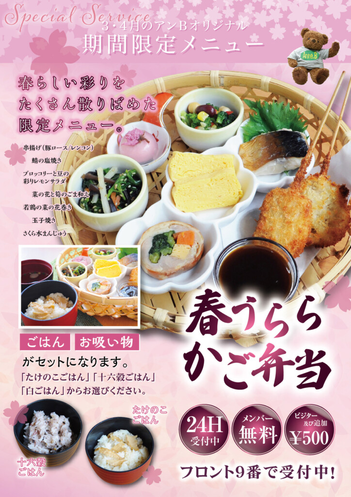 好評実施中のメンバー様無料・限定メニュー「春うらら かご弁当」