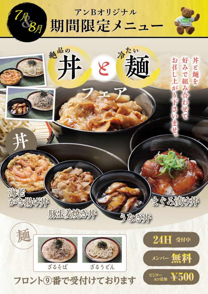 8月限定の無料フードメニューは「絶品の丼と冷たい麺」