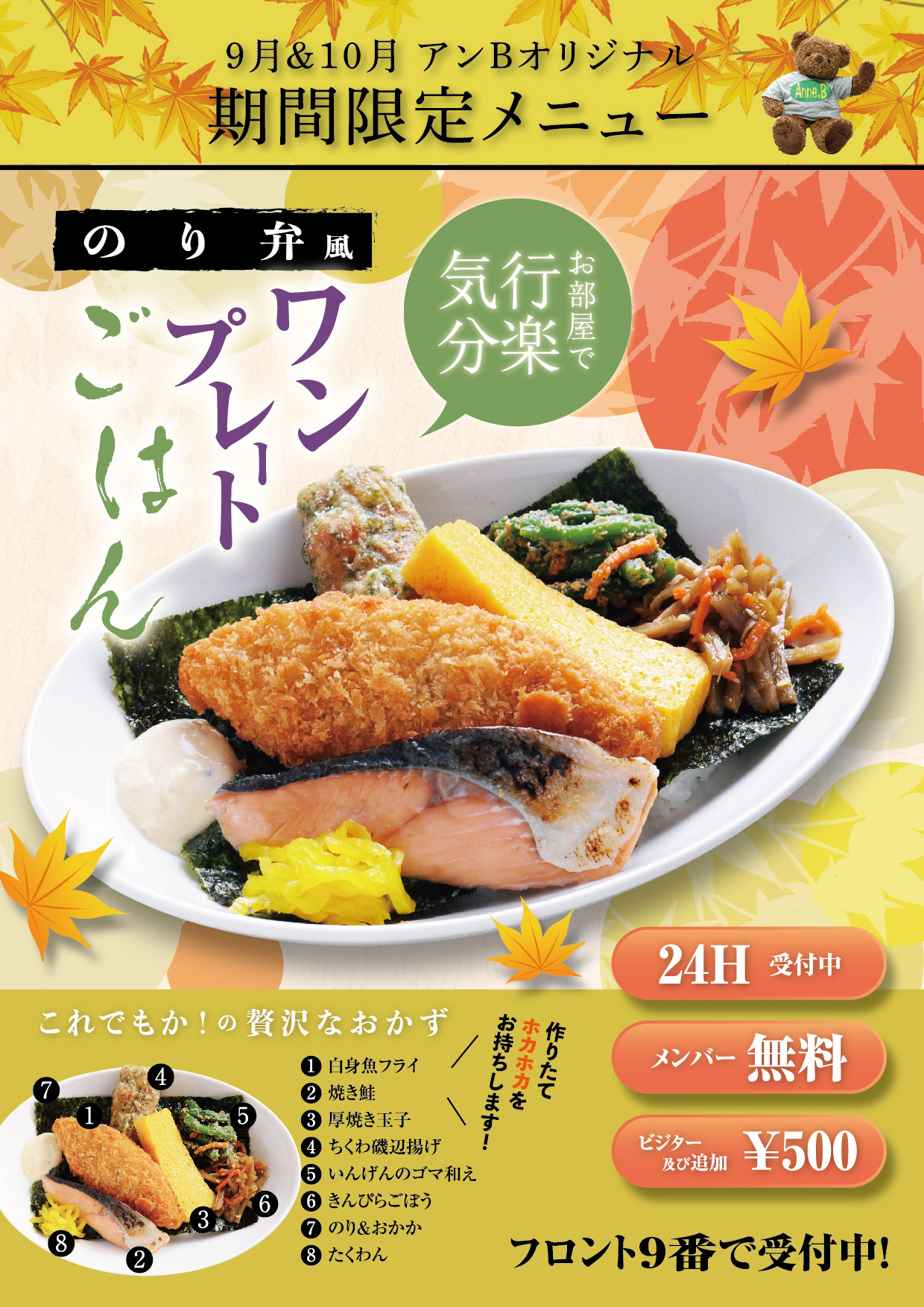 そんな想いも込めて、9月・10月限定の無料フードメニューは「「のり弁風ワンプレートごはん」