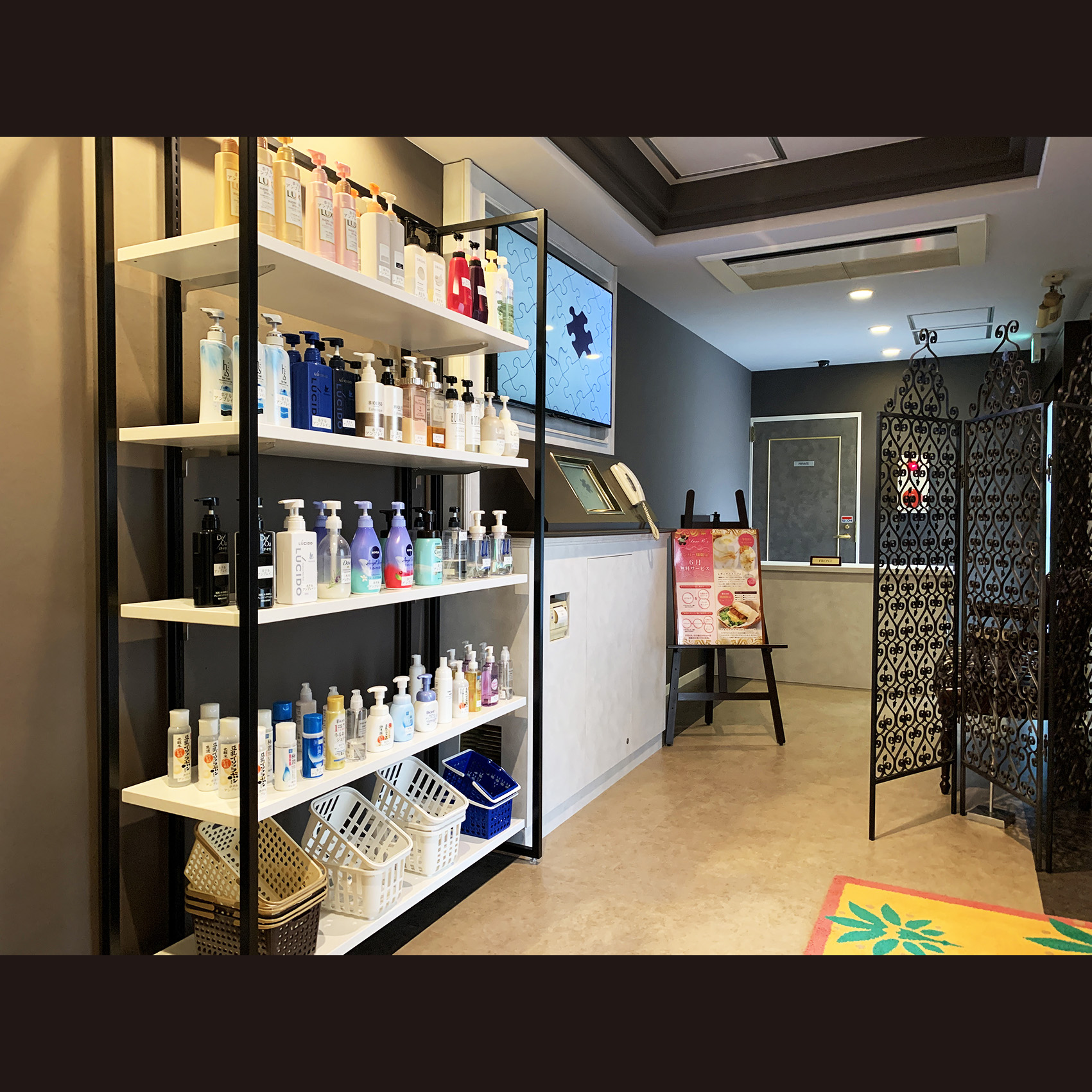 さらに、シャンプーなどのレンタルアイテムもロビーに常設しましたので、好みのアイテムをお選びになりお部屋へお持ちくださいませ。
