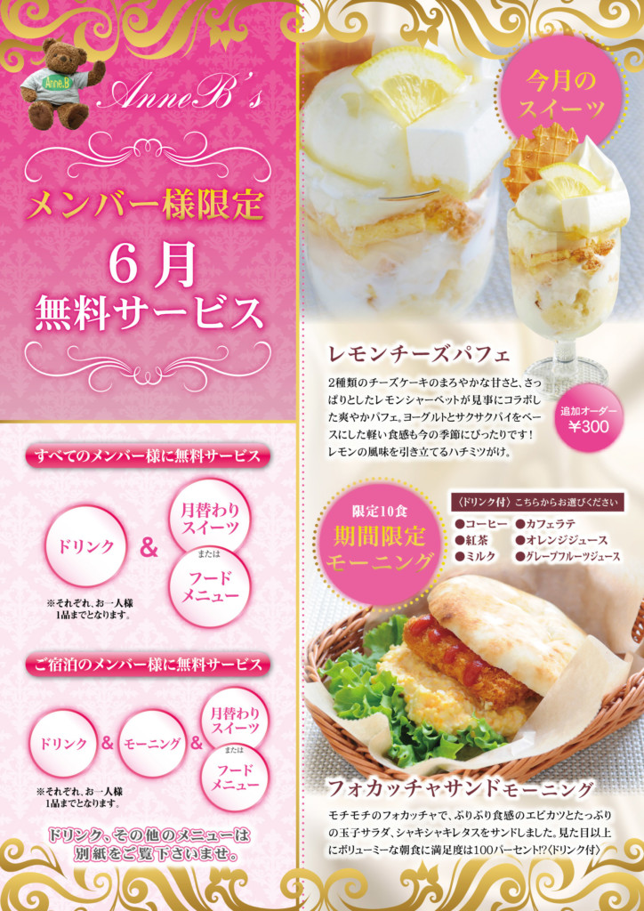 メンバー様 お一人様1品無料