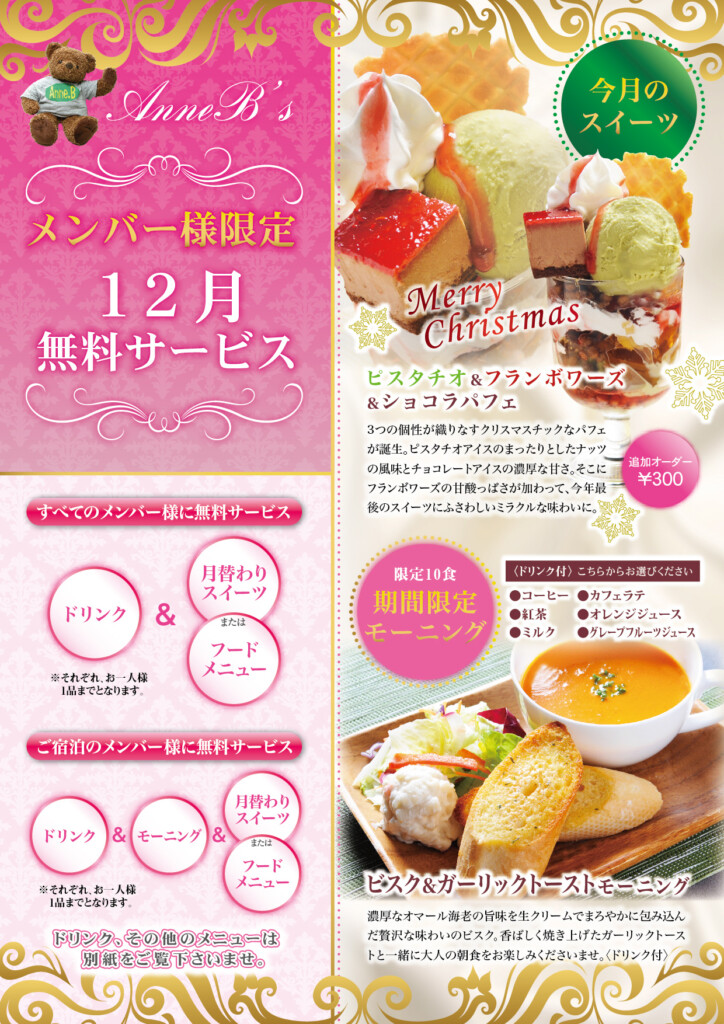 12月限定のメンバー様無料スイーツはクリスマスをイメージした